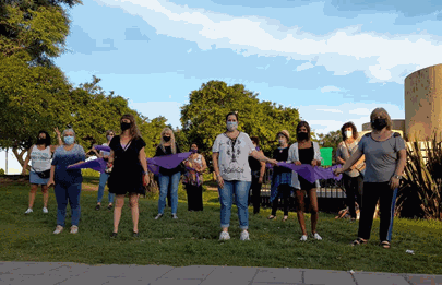 Las comuneras Lorena Crespo, Sabrina Quaglia y Ana Maria Claps expresaron “Con protocolo y distanciamiento, a pesar de la pandemia, trabajamos para concientizar a la población en torno a la igualdad de derechos y a la necesidad de que se terminen definitivamente con los femicidios. Tambien agradecieron a los comuneros por acompañar