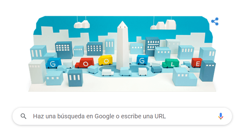 Google también lo homenajeo y su Doodle estará disponible para Argentina durante todo el domingo en la página de inicio del buscador, con el fin de celebrar el aniversario de la inauguración del máximo monumento de la Ciudad.