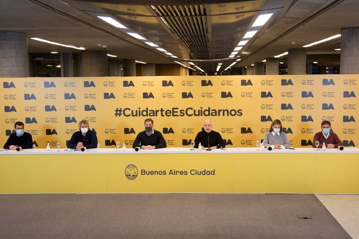 El jefe de Gobierno porteño, Horacio Rodríguez Larreta, en una conferencia de prensa realizada en la sede gubernamental, en la que estuvo acompañado por el Vicejefe Diego Santilli y parte de su gabinete en la sede del GCBA en Parque Patricios, informó sobre las medidas que se tomarán en el distrito hasta el 25 de junio.