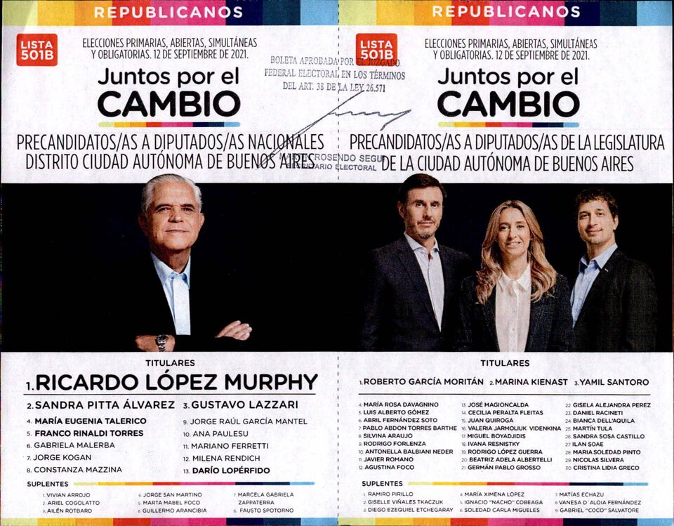 La tercera lista será “Republicanos” de Ricardo López Murphi, Sandra Pita y Gustavo Lazzari en Diputados y Roberto García Moritan, Marina Kienast y Yamil Santoro como legisladores porteños.