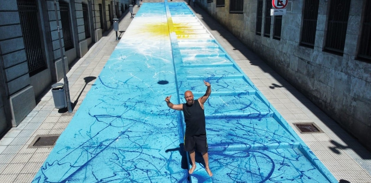Se trata de la intervención del artista Alfredo Segatori que se extiende sobre la rampa y escalinata de la calle Lavalle, entre avenida Leandro N. Alem y 25 de Mayo en el microcentro porteño.