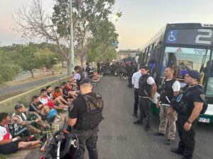 El Ministerio de Seguridad de la Ciudad informó que se trató del mismo grupo de hinchas que en las últimas horas hizo un banderazo en las cercanías del Monumental exigiendo que les quiten el derecho de admisión de la Ciudad les había impuesto el año pasado y que “hoy alquilaron un colectivo de línea para pasar desapercibidos en los controles”.
