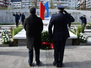 El Jefe de Gobierno compartió esta mañana el acto que se desarrolló ante el monumento que recuerda a los policías y bomberos caídos en actos de servicio, ubicado en avenida Bullrich y Cerviño, en Palermo. Estuvo acompañado por el ministro de Seguridad, Waldo Wolff, el secretario de Seguridad, Diego Kravetz, y el jefe del cuerpo de Bomberos, Juan Carlos Moriconi.