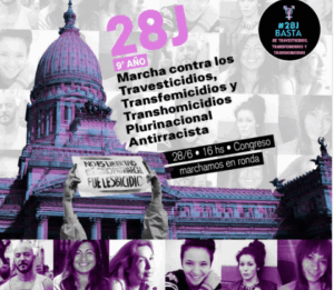 La Comisión Organizadora de la Marcha Plurinacional y Antirracista Basta de Travesticidios, Transfemicidios y Transhomicidios (28J) está compuesta por familiares de víctimas, sobrevivientes y decenas de organizaciones sociales y políticas.Todos los años desde 2016 nos reúnimos para colaborar a organizar la manifestación social y política más importante de la poblacion Travesti, Transexual y Transgenero en nuestro país, en términos de concurrencia y lo que hace a la lucha contra todas las formas de violencias, crimenes y reclamos de nuestra poblacion travesti- trans.