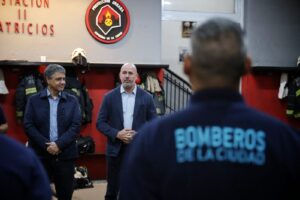 Jorge Macri también compartió la Navidad con los oficiales de guardia de la comisaría vecinal 3C, en Balvanera, y con los bomberos de la Ciudad que están de guardia en el Destacamento Estación II de Parque Patricios (Caseros 2849). Lo acompañaron el ministro de Seguridad, Waldo Wolf, el secretario de Seguridad, Ezequiel Daglio, y el comandante de bomberos, Diego Carulla.