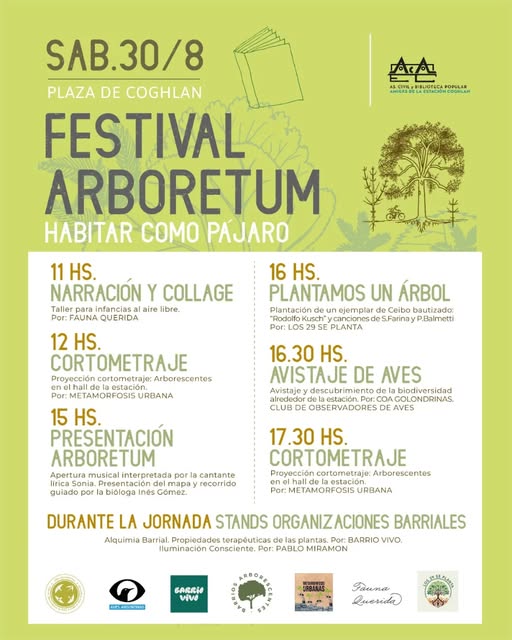 El Festival Arboretum. Habitar como pájaro se celebrará este sábado 30 de agosto de 11 a 18:30 en la Biblioteca Popular Estación Coghlan (Estomba 2649).