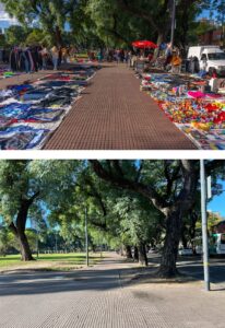 En otros sectores del Parque funciona una feria legal con 310 puestos para feriantes, emprendedores y artesanos que ofrecen sus manualidades en tela, cuero, metal, vidrio o en papel, bijouterie, juegos didácticos o artículos de decoración, por ejemplo, y que tienen los permisos correspondientes.